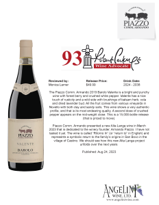 93 Pts for Piazzo 2019 Barolo Valente by Robert Parker